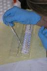 1. With a pipette, suspend the bacterial suspension into the tubes of the strip. To avoid bubble formation, tilt the strip slightly forward and place the