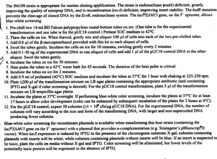 Heat Shock (JM100 Competent Cells (Stratagene)